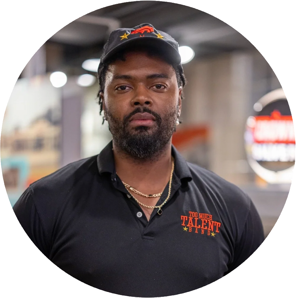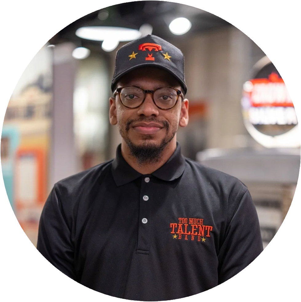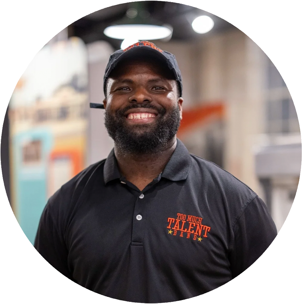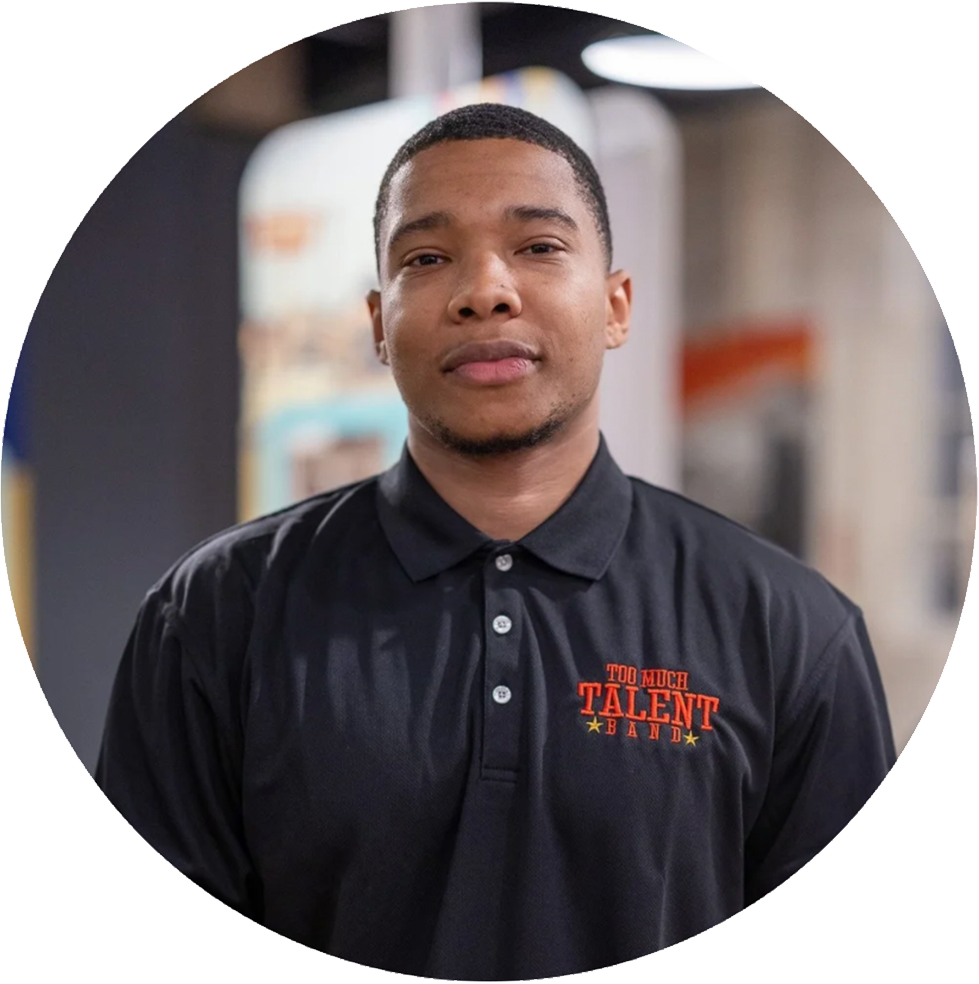 In addition to our talented musicians, the Too Much Talent Band is supported by an incredible team working behind the scenes. We are grateful for the dedication of Trevor Chin, our lead social media manager, photographer, and videographer; Antwan Johnson, our logistics manager; and Felicia Thomas, our scheduler and website coordinator. Their contributions play a vital role in our continued growth and success.