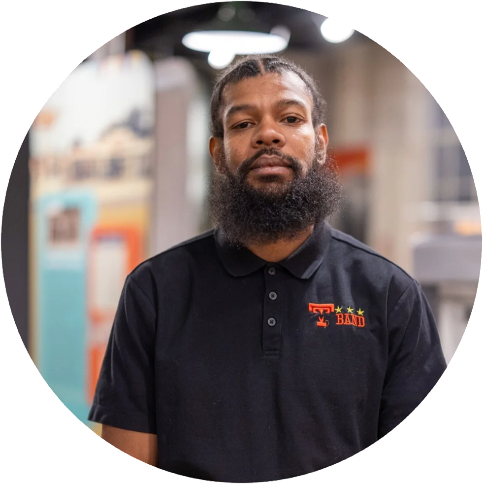 Eian Jackson, a DMV native, is an auxiliary percussionist who brings the signature DC congo and timbale sound to life. His ability to layer the right textures at the right time elevates every song, while his calm demeanor helps keep the band grounded and in sync.